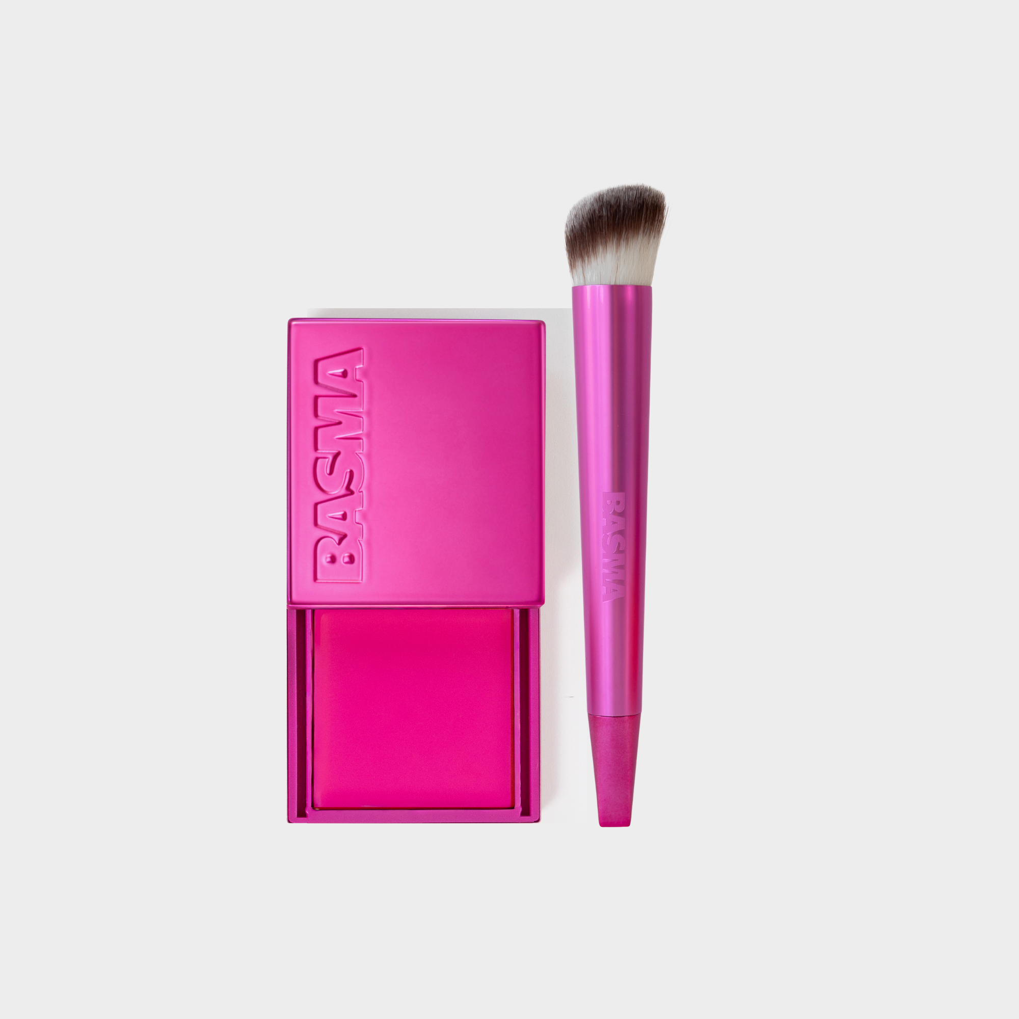 The Cream Blush melts into the skin for a natural flush you can dial up, while The Complexion Brush blends it in.