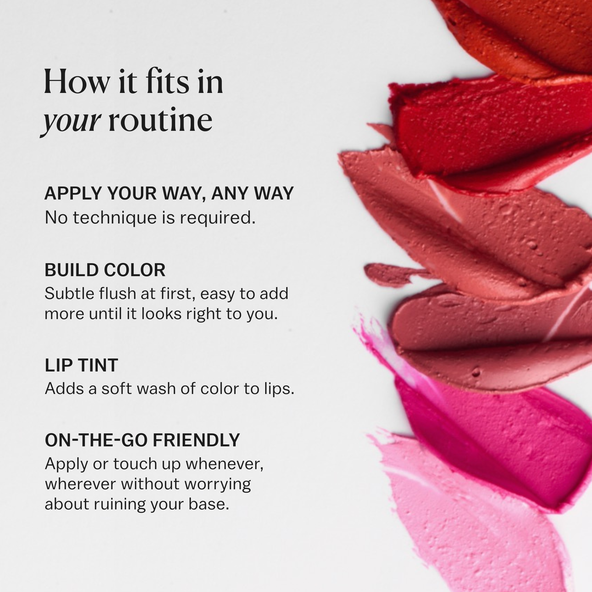 Coverage: Sheer to buildable color you can easily dial up.