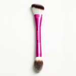 Use the angled end to sculpt or define your features, then flip to the more fluffy buff end to blend out your look.
