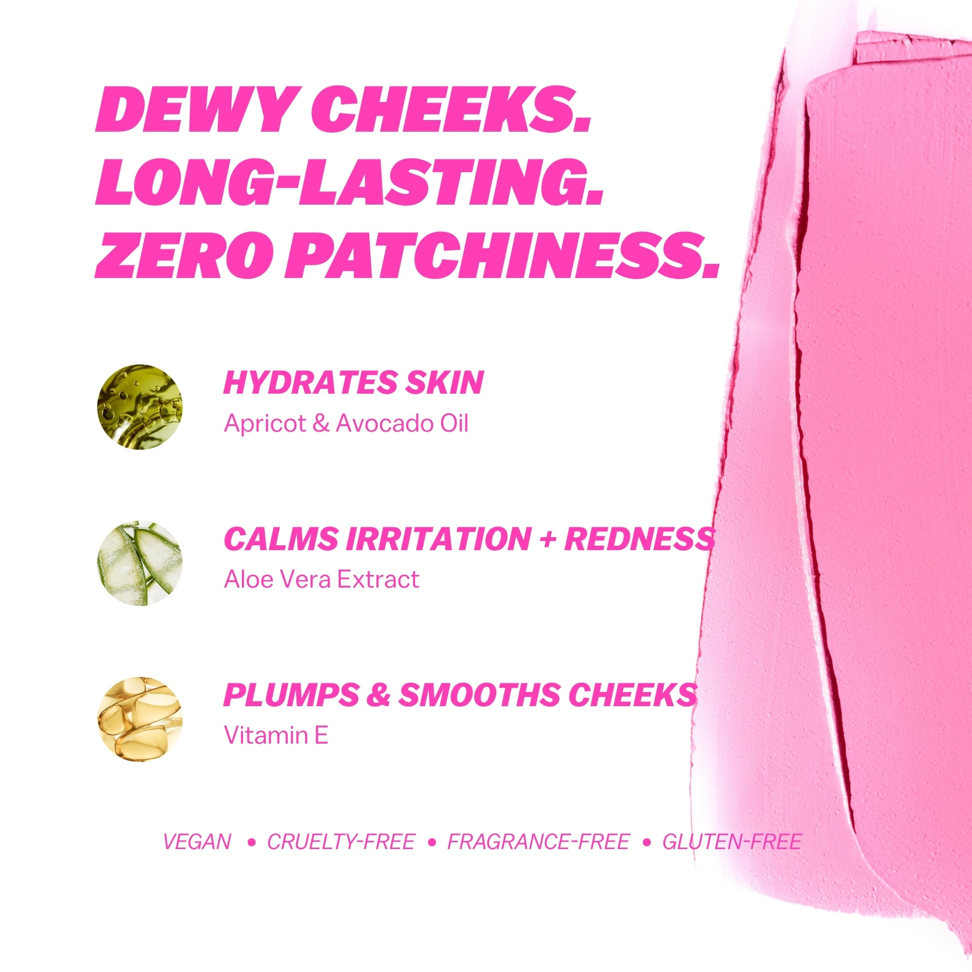 Long-lasting (12 hrs +). Buildable (sheer to bold coverage). Versatile (blush + lip tint). The creamiest cream blush of your dreams.
