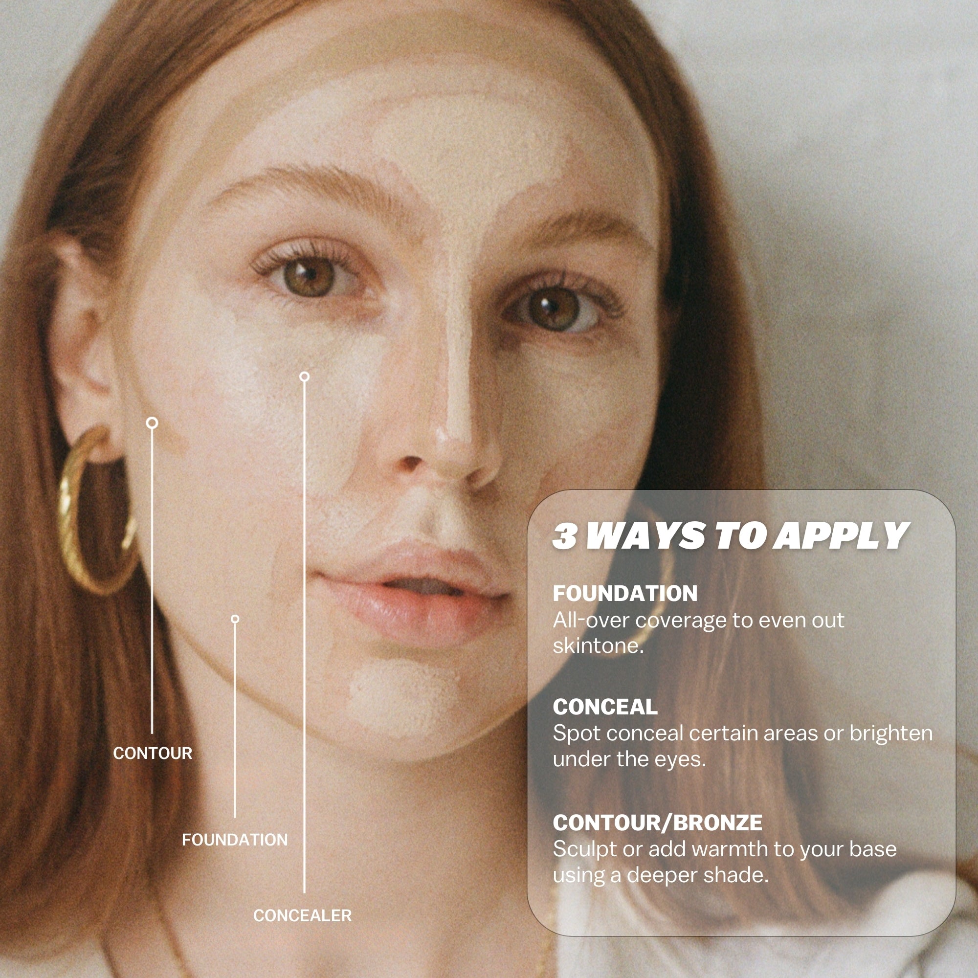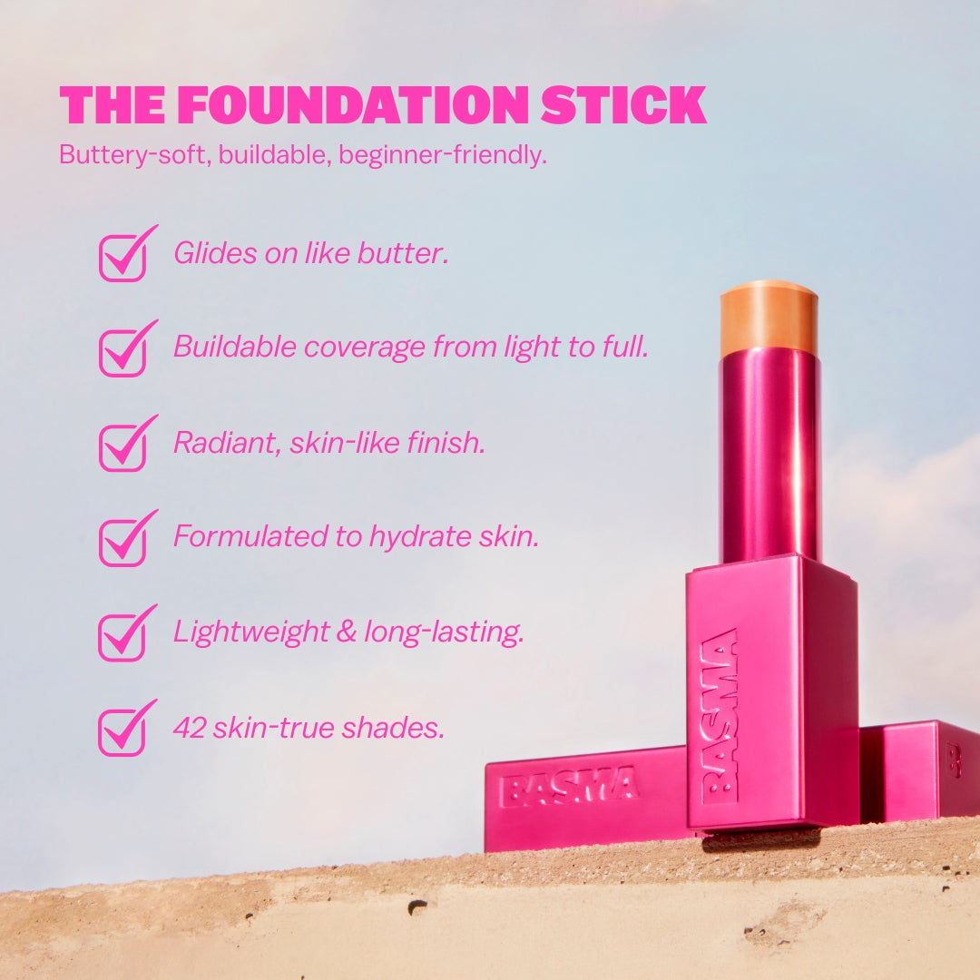 Everything you're looking for in a foundation - in a stick: Lightweight feel. Buttery-soft. Buildable (sheer to full coverage). Natural, skin-like finish. Beginner-friendly. Made for all skin types.