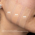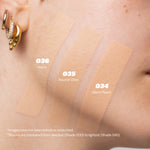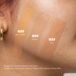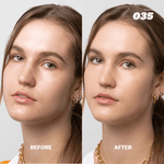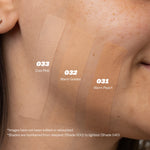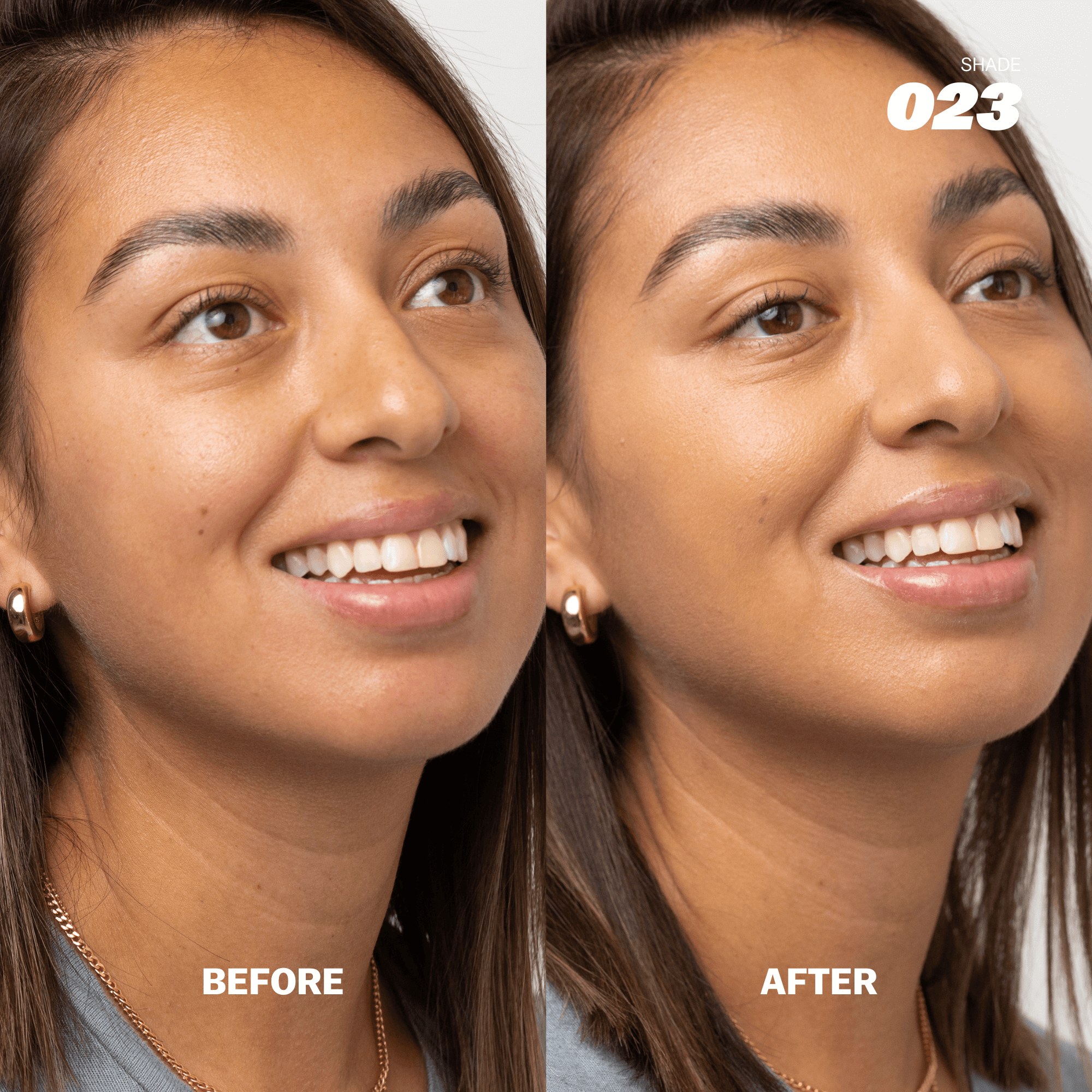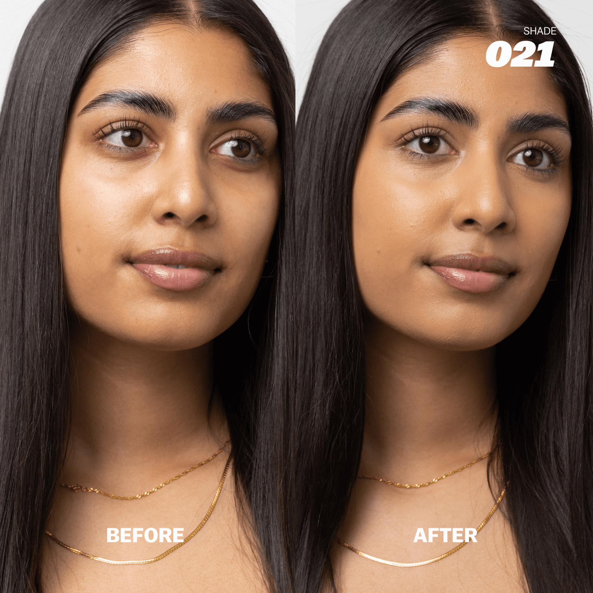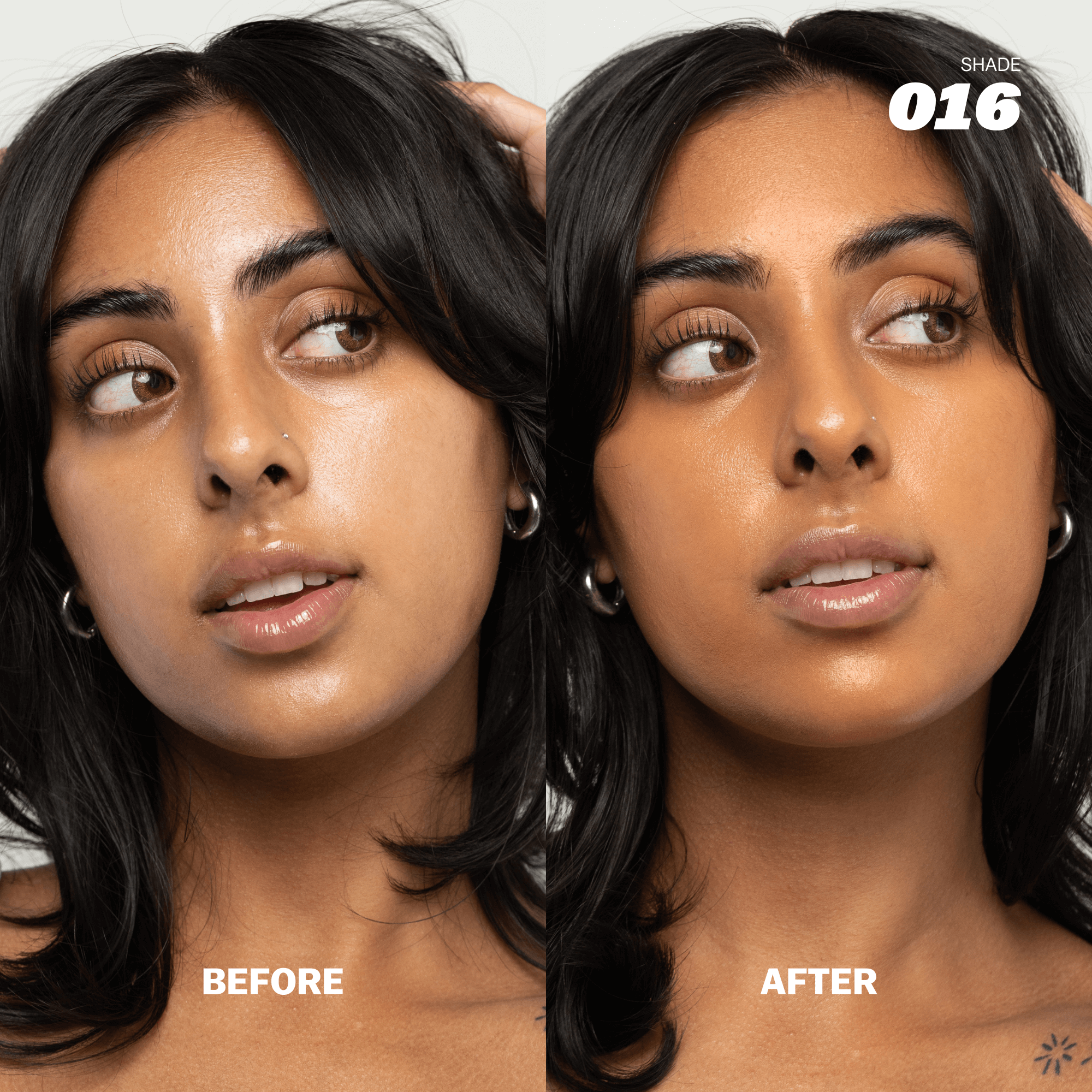 Dab with fingers, The Complexion Brush or damp beauty sponge to blend into skin. For additional coverage, layer foundation in desired areas.